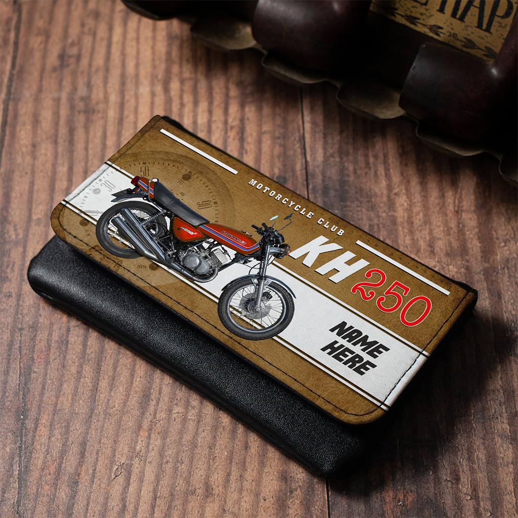 Personalised Kawasaki KH250 Vintage Motorbike Tobacco Wallet, the perfect Retro Biker Men’s Gift!