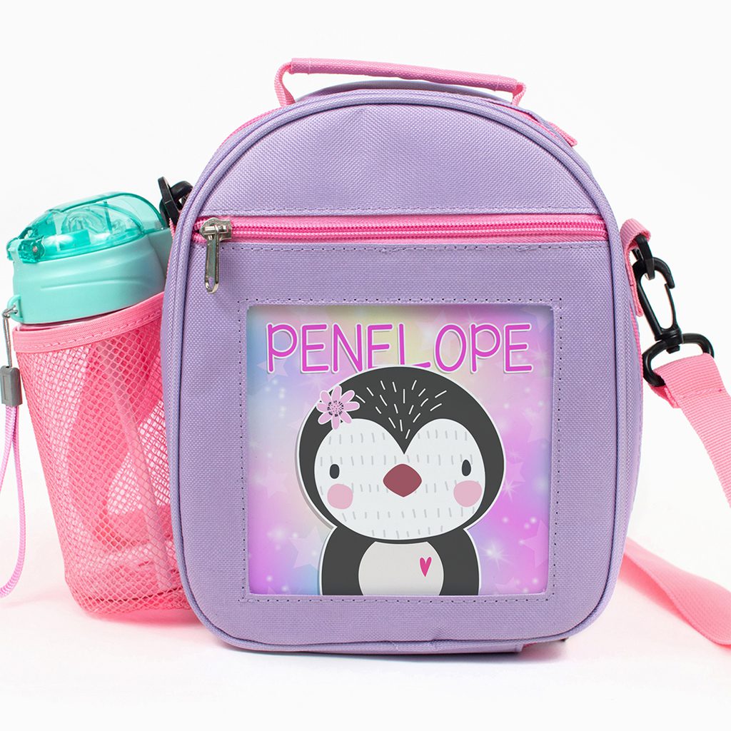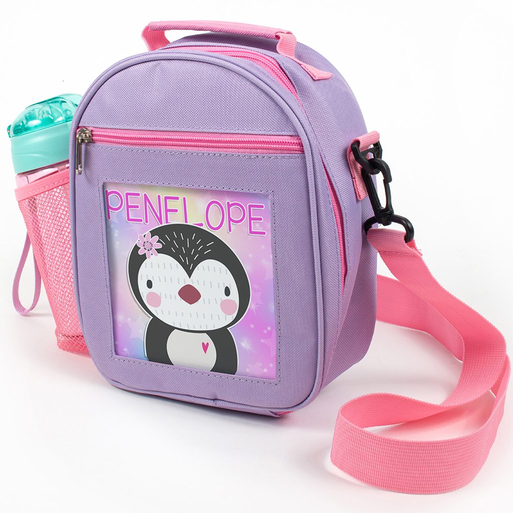 Personalised Penguin Purple Kids Lunch Bag KKP43
