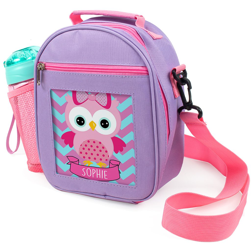 Personalised Cute Owl Purple Kids Lunch Bag NL002