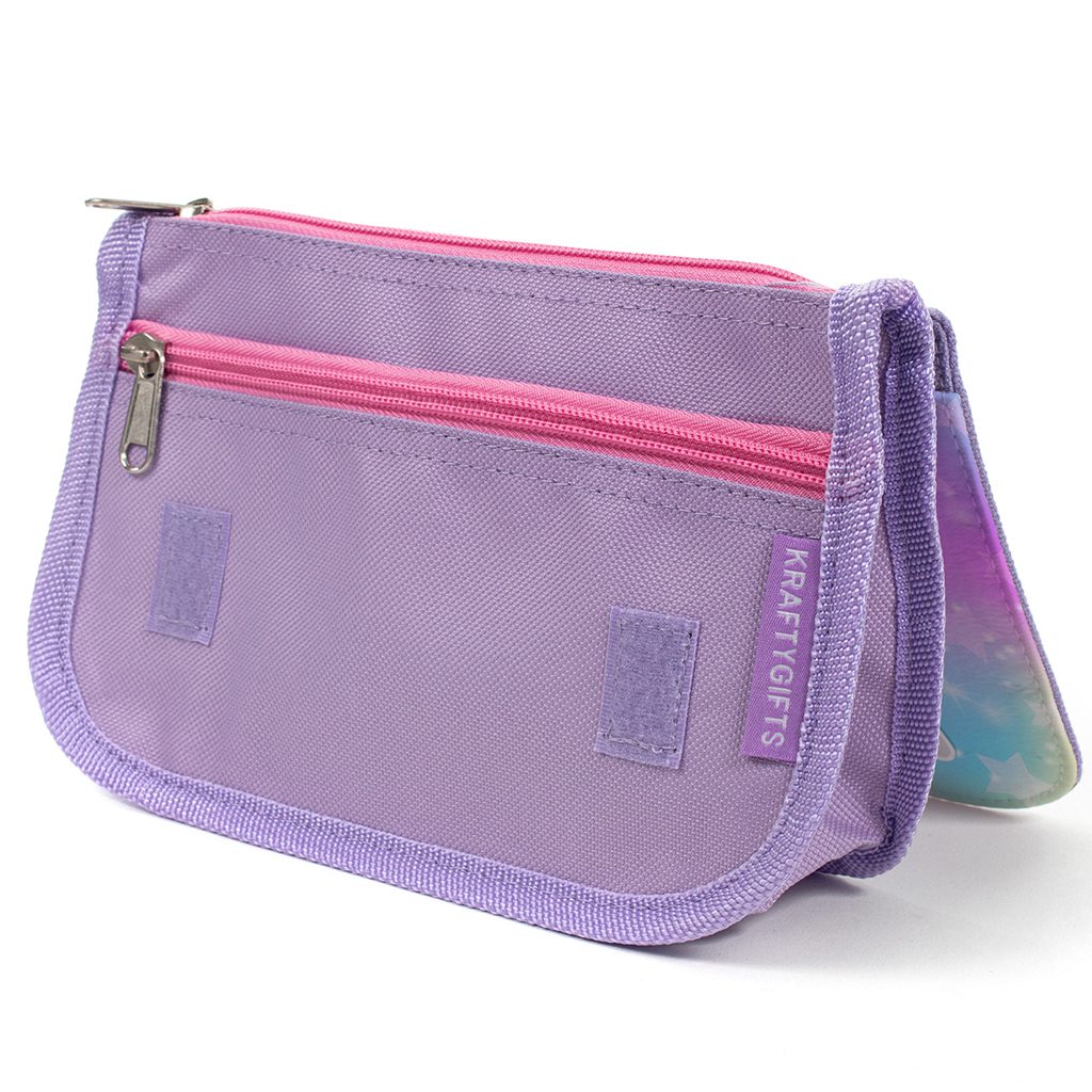 Made from cute purple material and pink trim, the carry pen bags are handmade to order, this bag is sure to make any little kid smile.