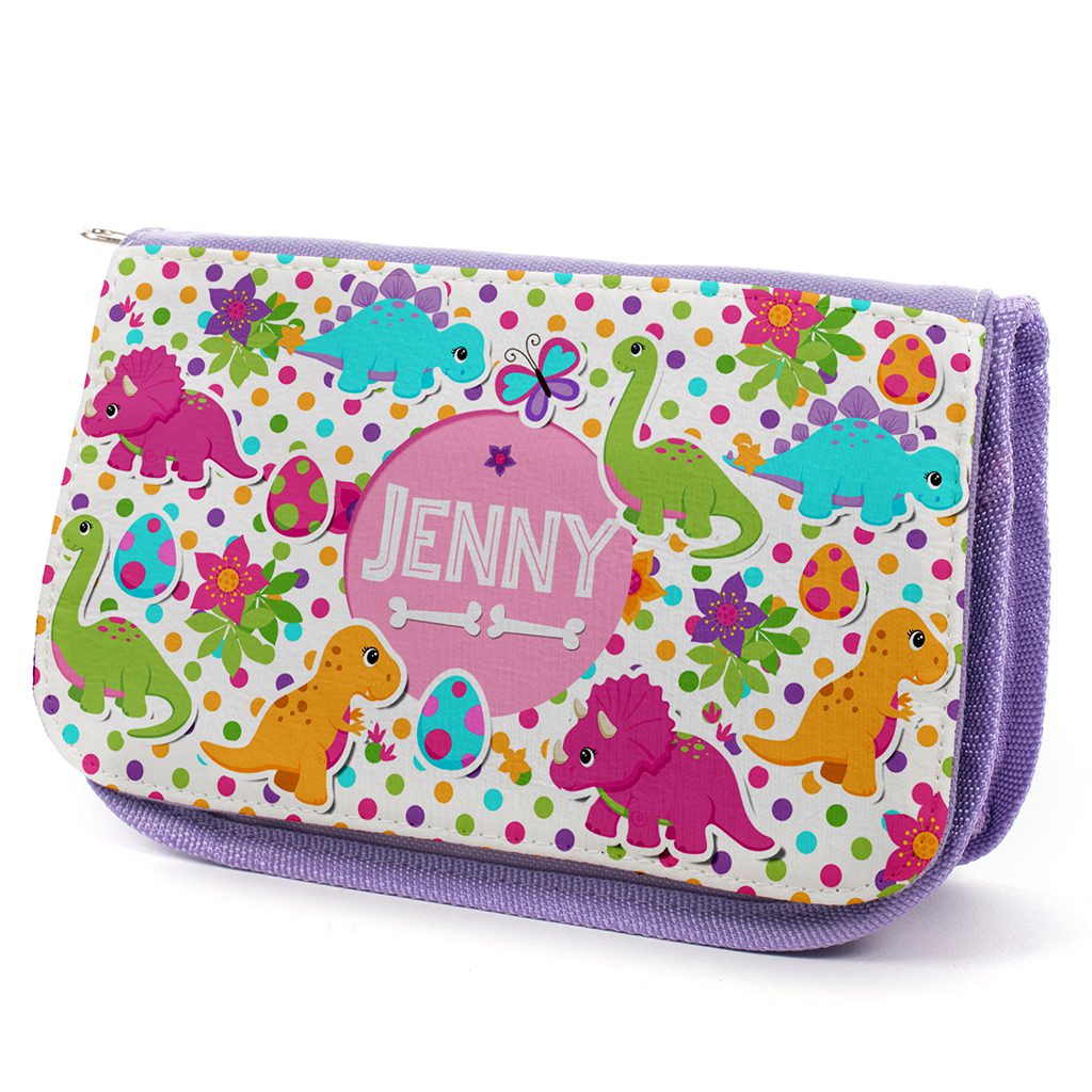 Our personalised dinosaur pencil case is ideal to carry all little girls school stationery.