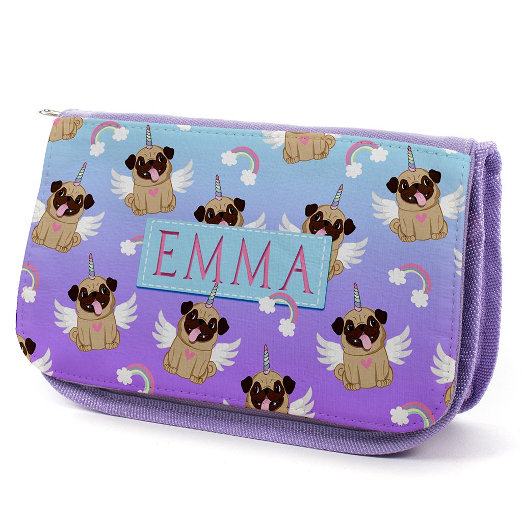 Personalised Pug Unicorn Kids Purple Pencil Case KSP144