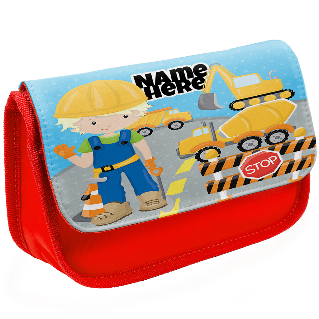 Personalised Builder Digger Kids Red Pencil Case EC041
