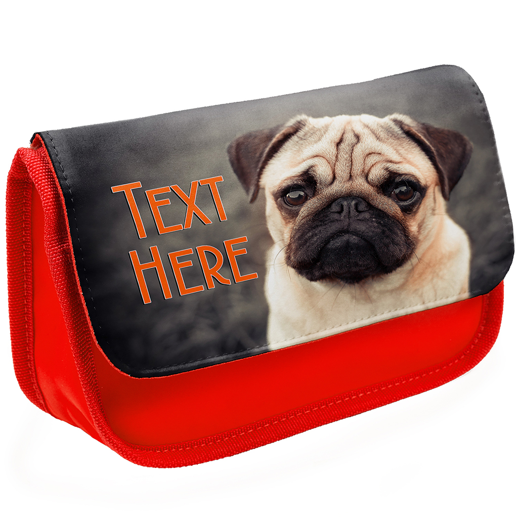 Personalised Pug Kids Red Pencil Case KS174