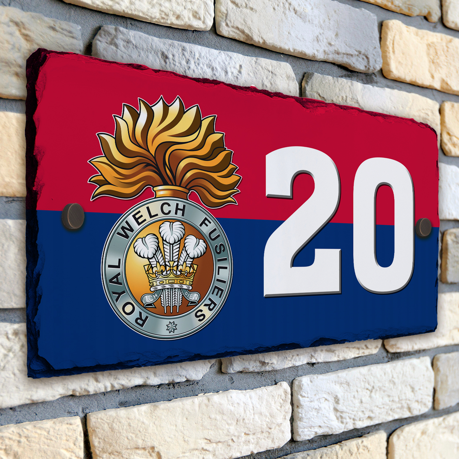 Royal Welch Fusiliers Personalised House Number Slate AS22