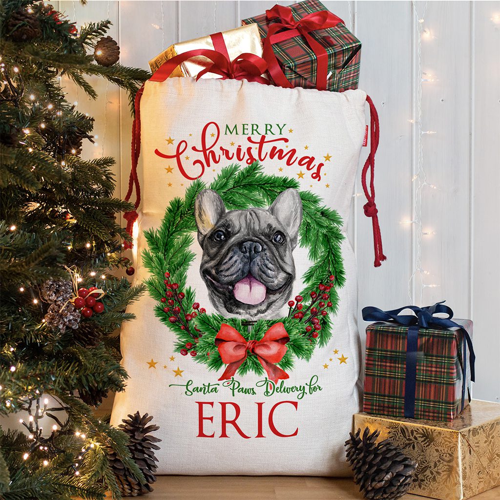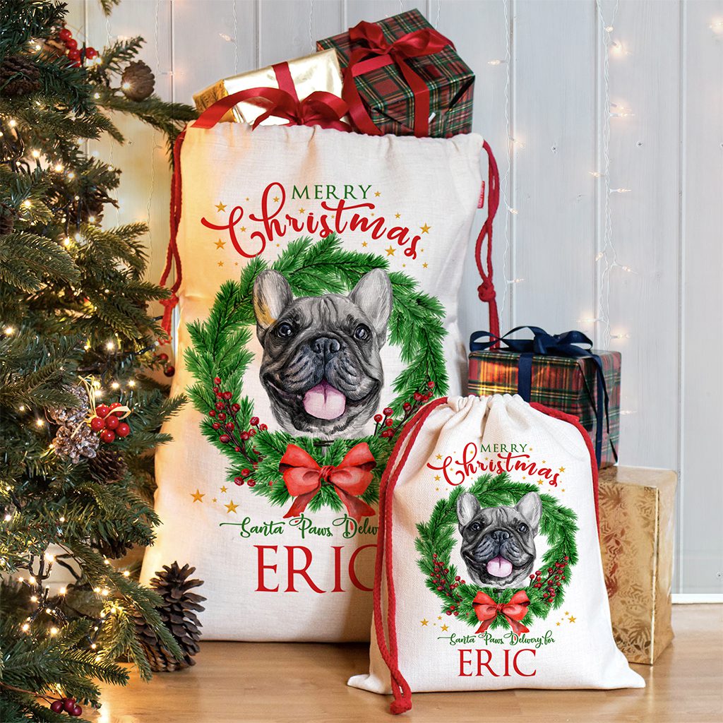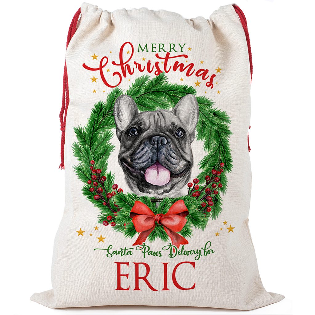 Personalised French Bulldog Christmas Wreath Dog Treat Sack DWS06