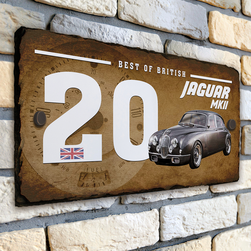 Personalised Jaguar MKII Classic Car Slate House Number Sign — the perfect retro men’s gift!