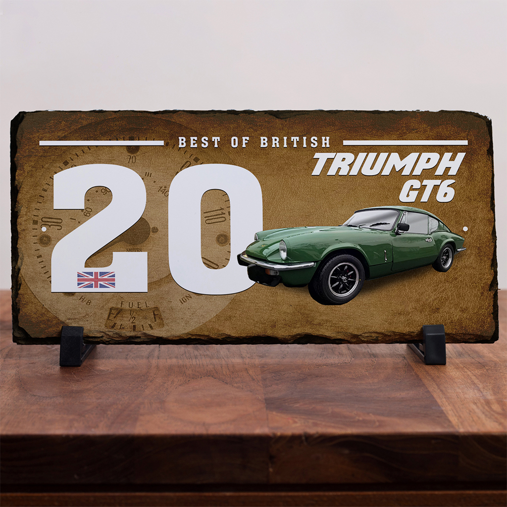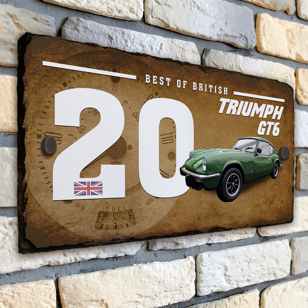 Personalised Triumph GT6 Classic Car Slate House Number Sign — the perfect retro men’s gift!