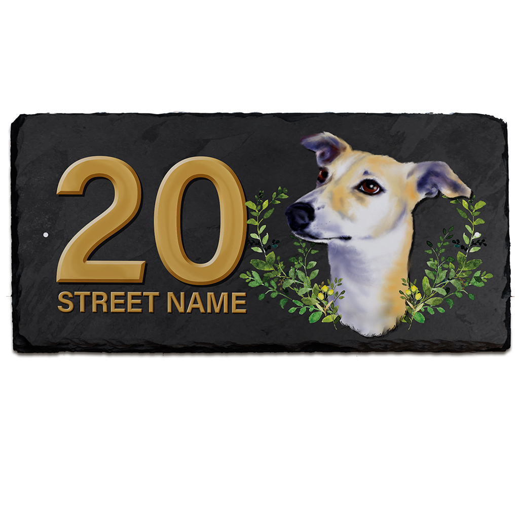 Personalised Whippet Dog House Number Slate KDS50