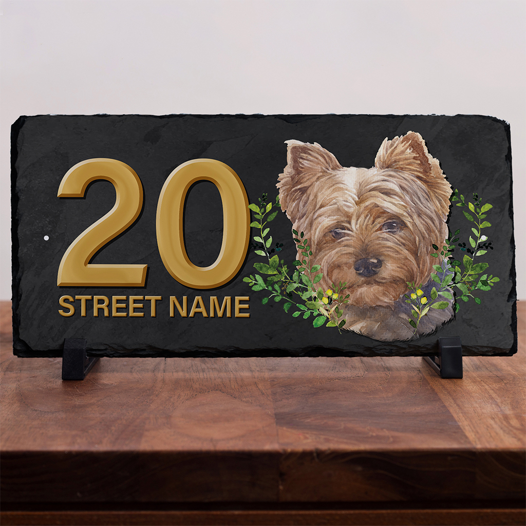 Personalised Yorkshire Terrier Slate House Number Sign — the perfect unique gift!