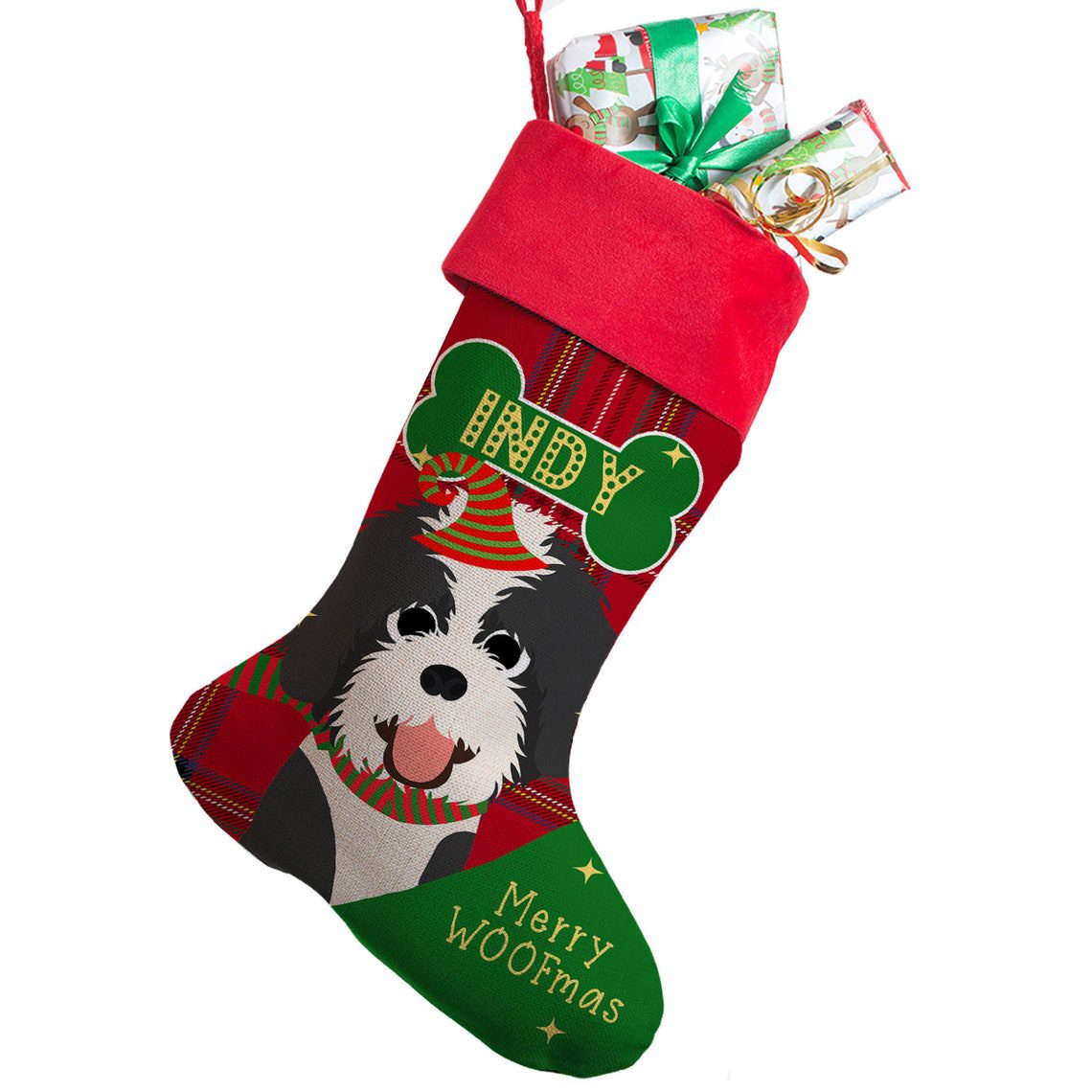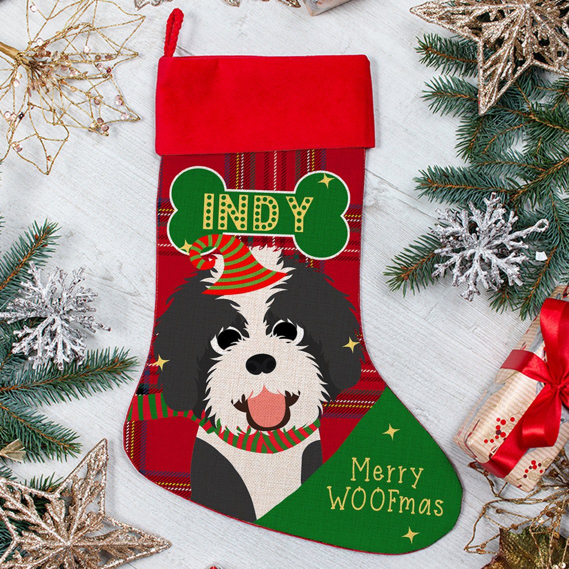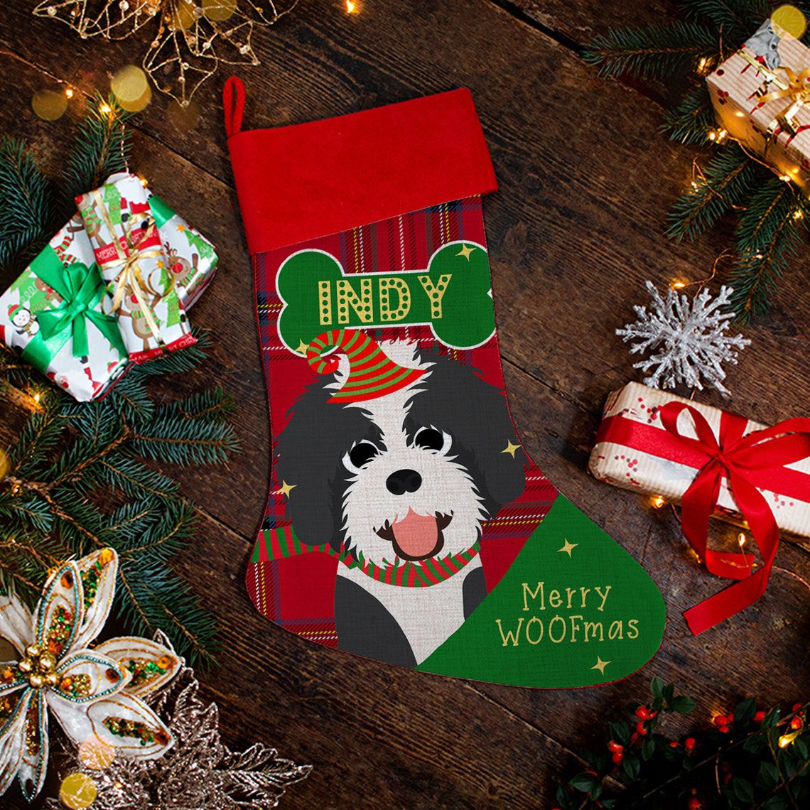 Personalised Labradoodle Dog Christmas Treat Stocking — great seasonal decor and perfect to hold festive treats for your furry friend!