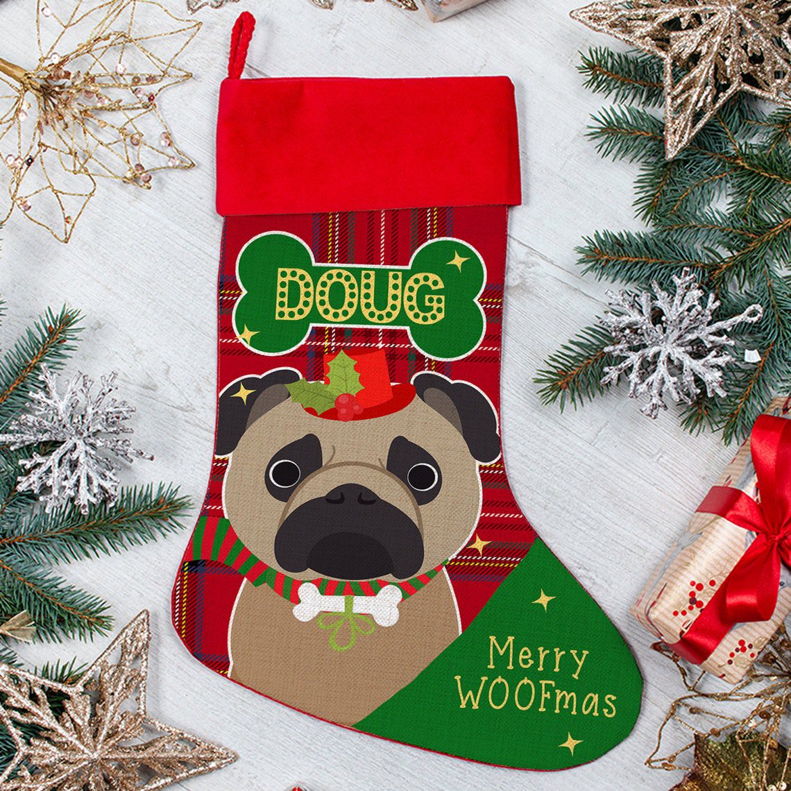Personalised Pug Dog Christmas Stocking SD46