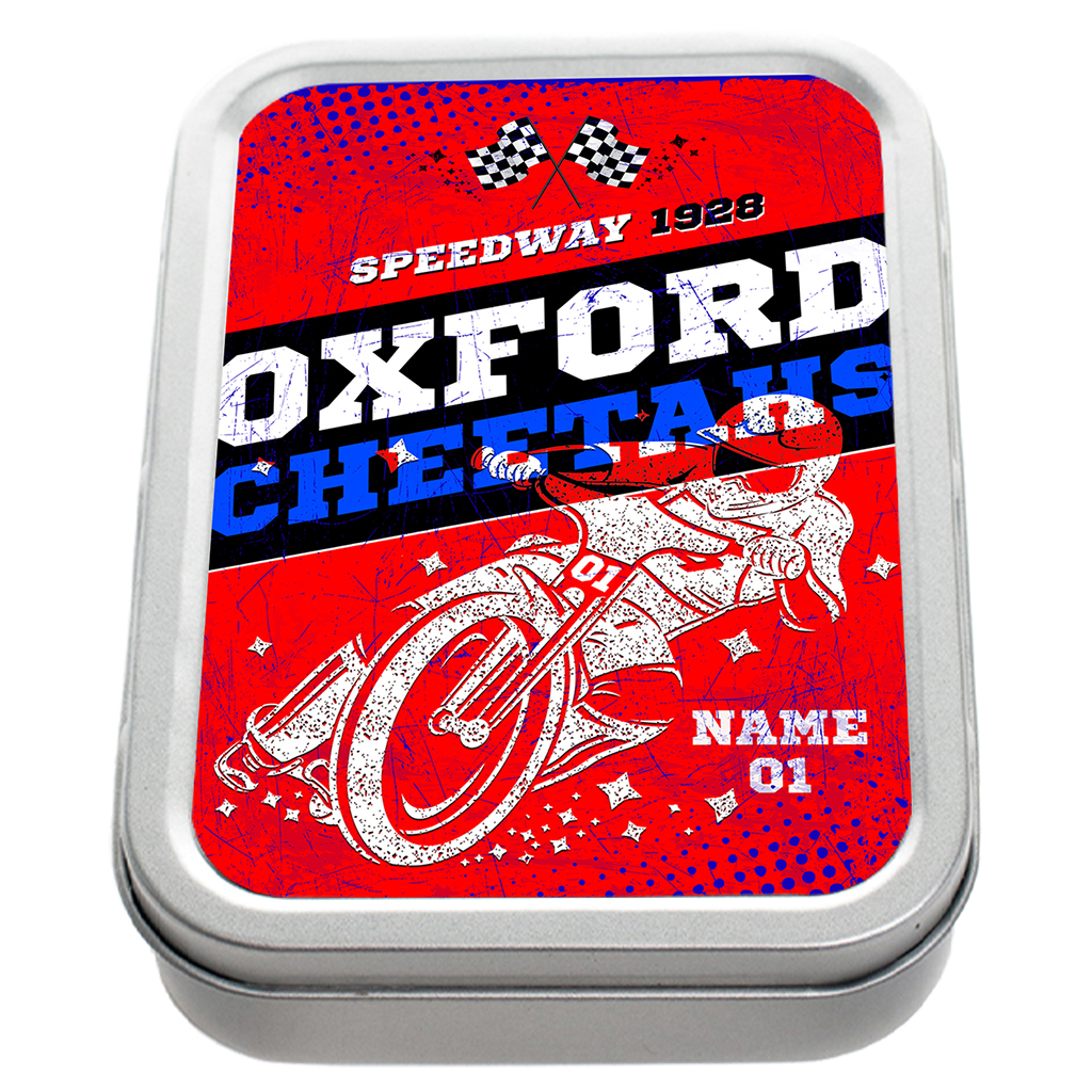 Personalised Oxford Cheetahs Speedway Motorcycle Tin, the Perfect Speedway Team Fan Gift!
