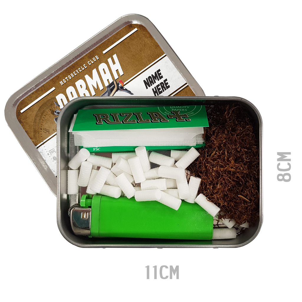 Thank you for taking a look at my Vintage Motorbike Tobacco Tins! They are handmade to order, personalised with your customised text. Guaranteed to make the perfect Gift!