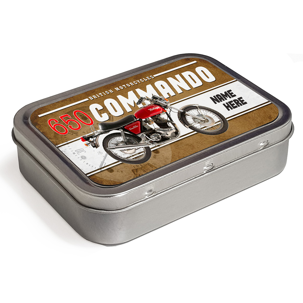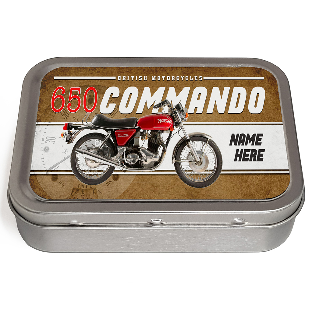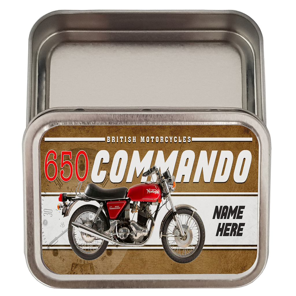 Classic Norton 650 Commando Motorcycle Tobacco Tin, the perfect retro men’s biker gift!