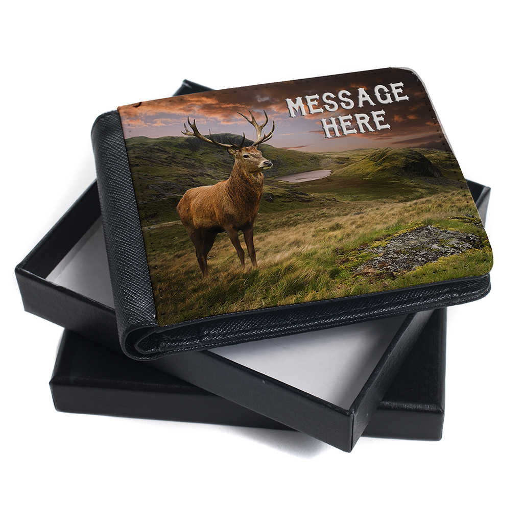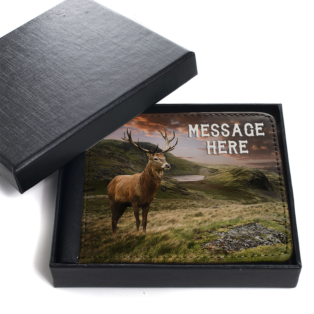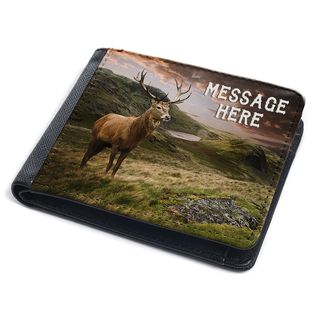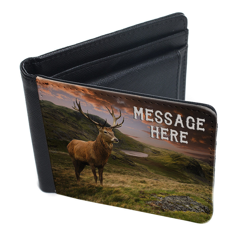 Personalised Stag Deer Mens Bi Fold Wallet, the perfect Gift!
