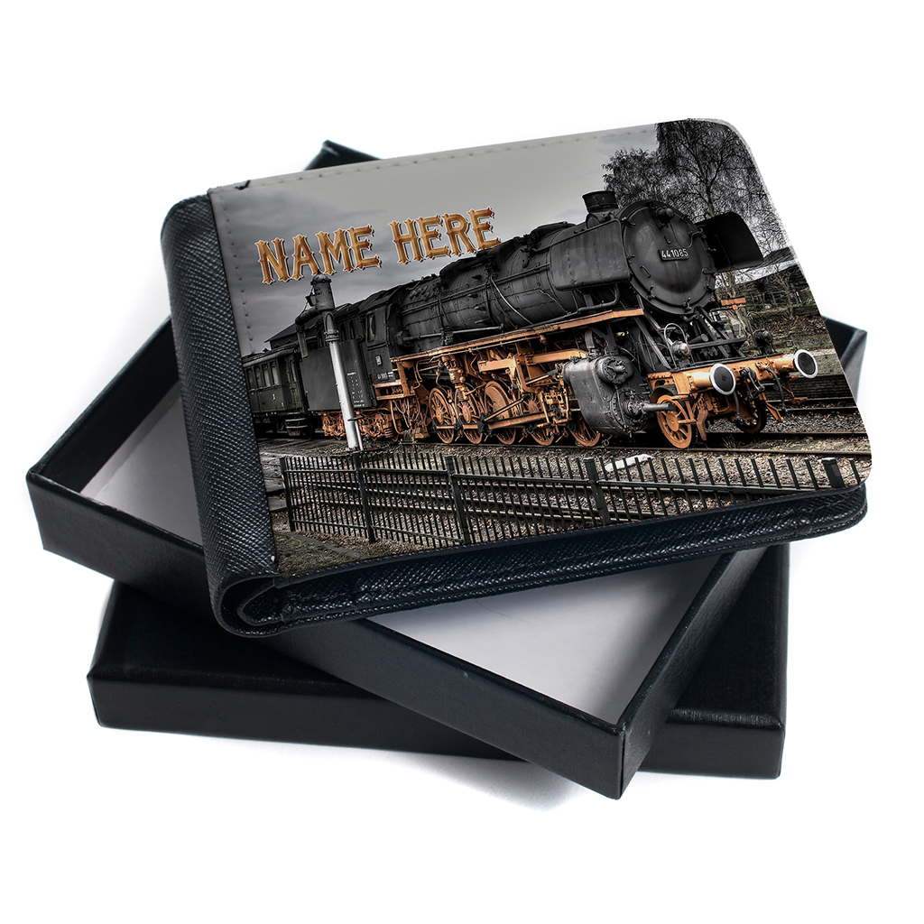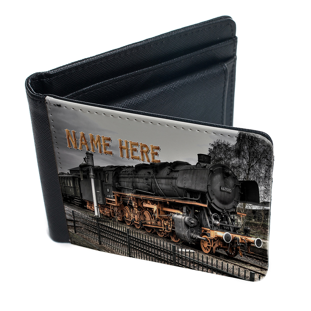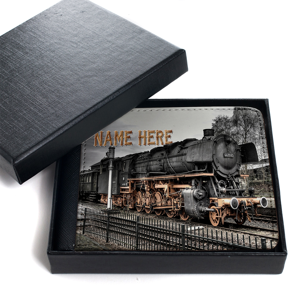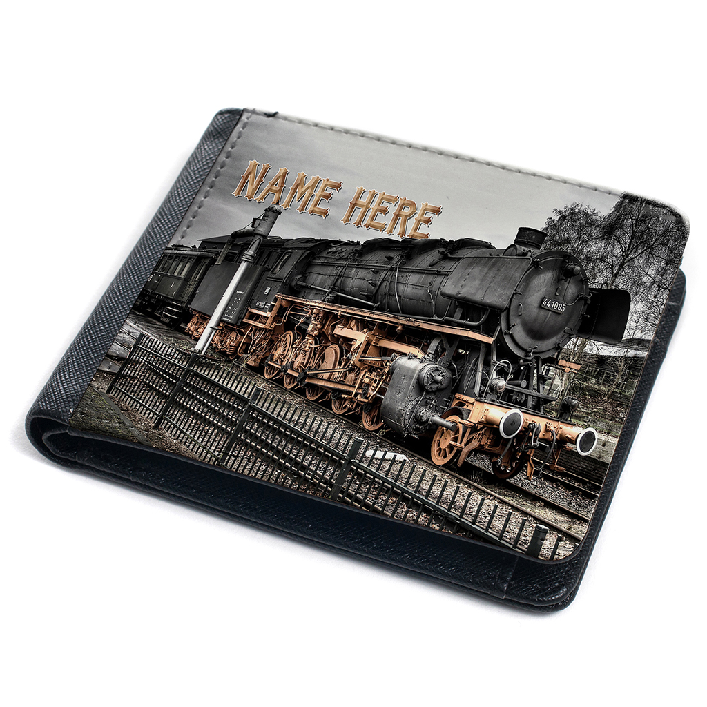 Personalised Vintage Steam Train Mens Bi Fold Wallet, the perfect Gift!