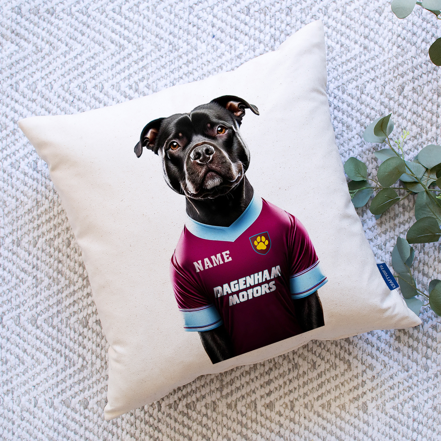 West Ham Football Black Staffy Dog Cushion Personalised Cover DFC621