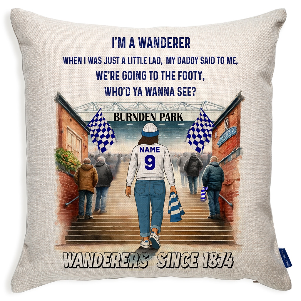 Women’s Football Bolton Personalised Watercolour Stadium Cushion Cover SFC92