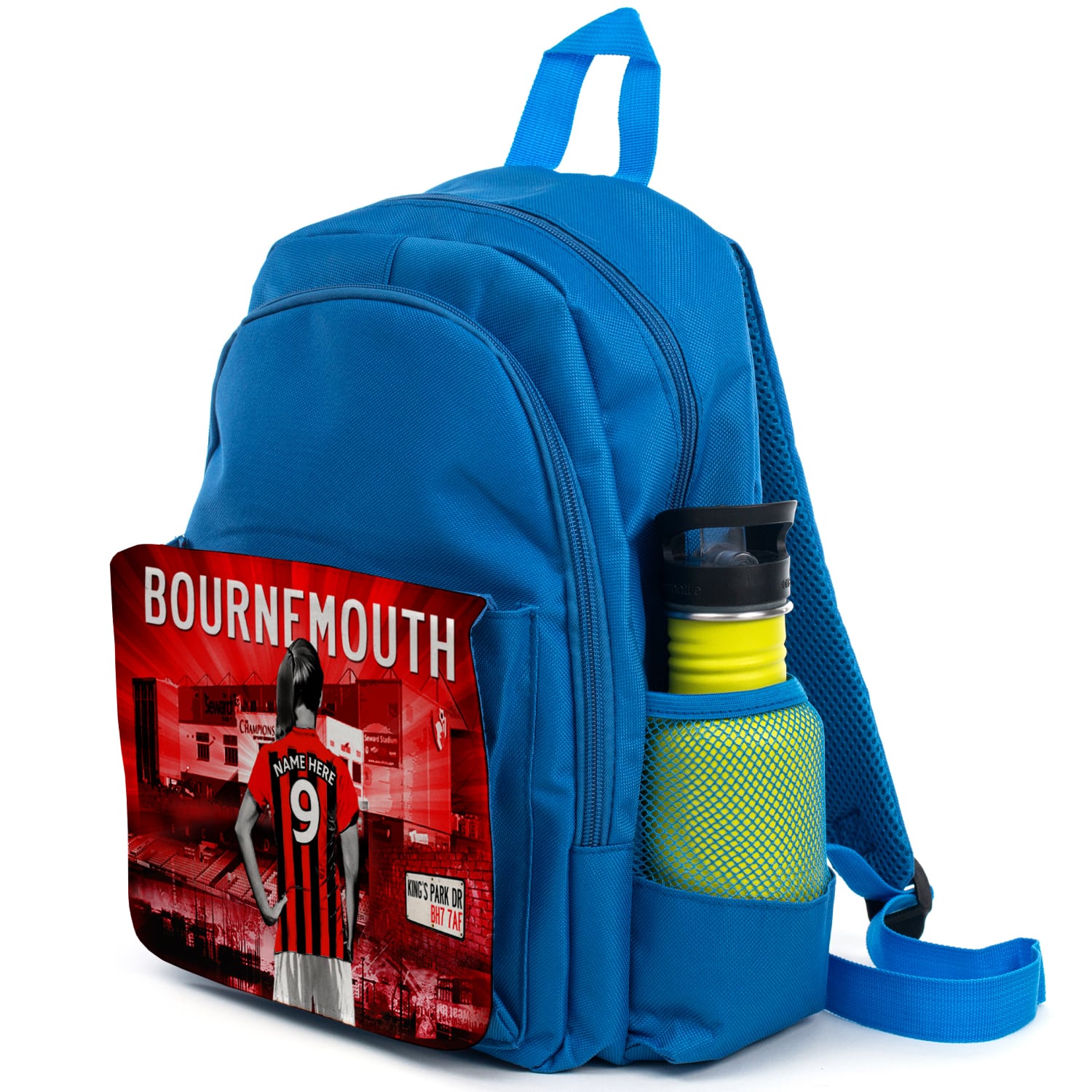 Women’s Football Bournemouth Personalised Girls Backpack is the perfect back to school gift for your child! Great as a kids’ school book bag and ideal for sports PE kits, days out and travel. Each rucksack is handmade for you and personalised with a name and player’s squad number. A unique and practical gift to get ready for term time. We have matching football team lunch bags and pencil cases too!