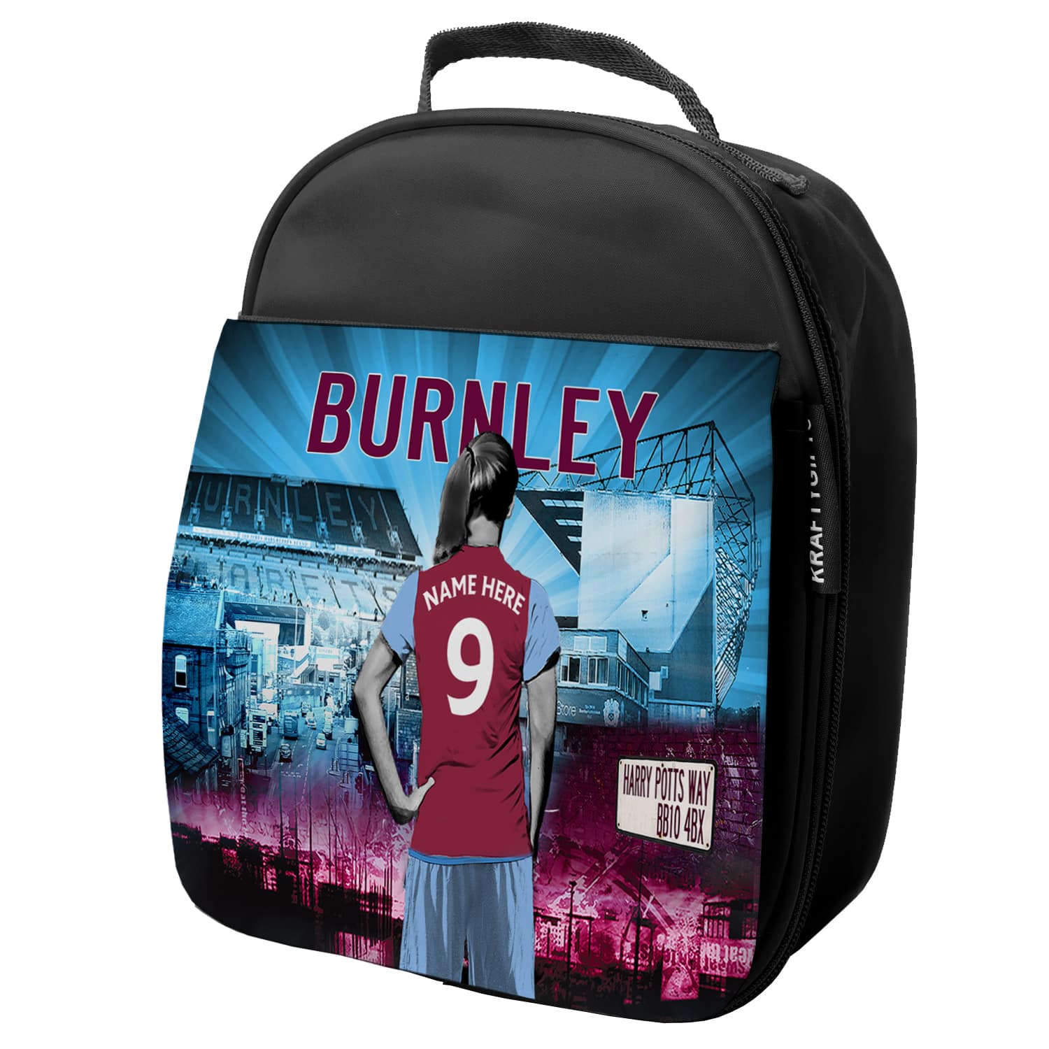 Women’s Football Burnley Personalised Girls School Lunch Bag is the perfect back to school gift for your child! Ideal to carry kids’ school lunch or for nursery, each lunch bag is handmade to order and personalised with a name and player’s squad number.