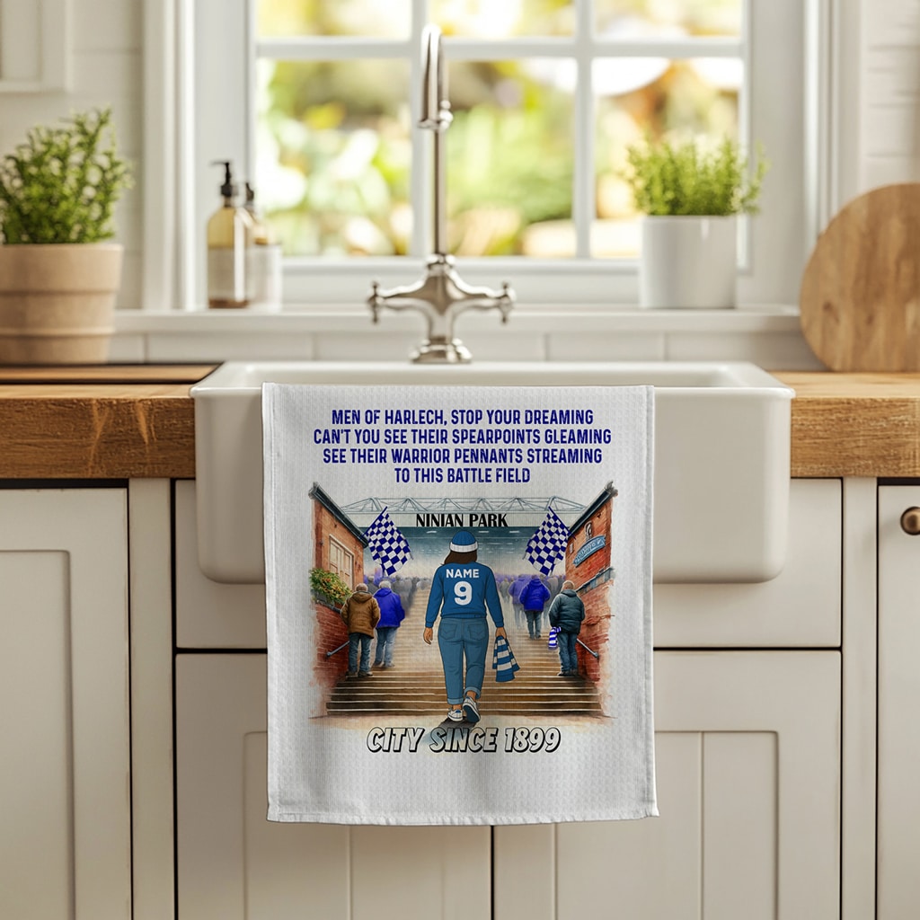 Women’s Football Personalised Kitchen Tea Towel is perfect for every football fan, custom personalised with a name and squad number.