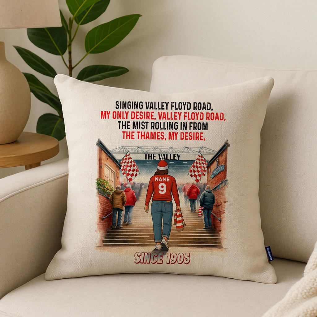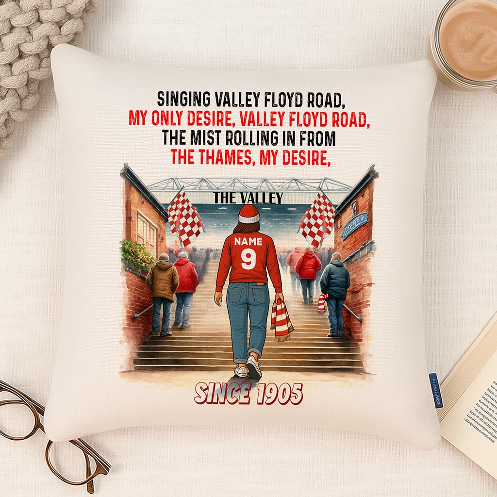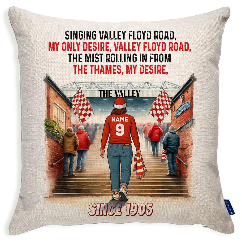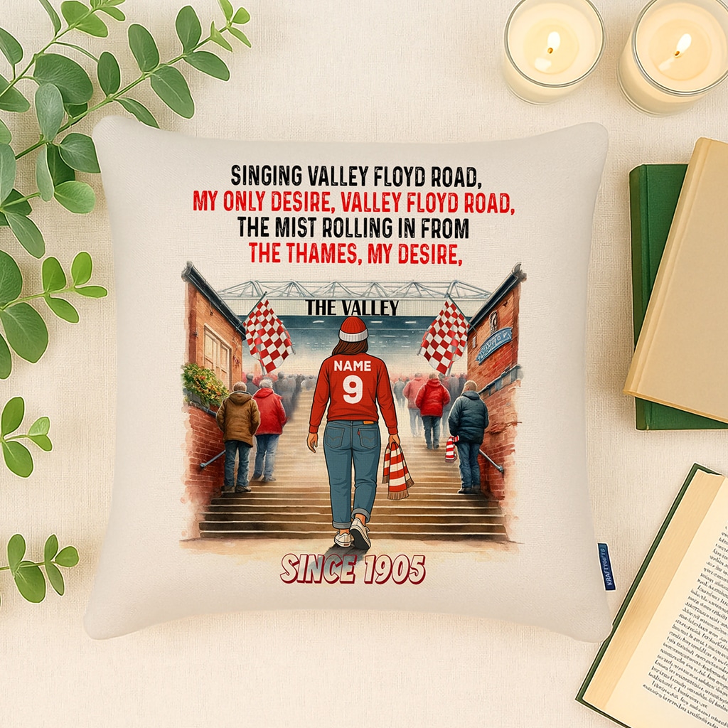 Women’s Football Charlton Personalised Watercolour Stadium Cushion Cover SFC101