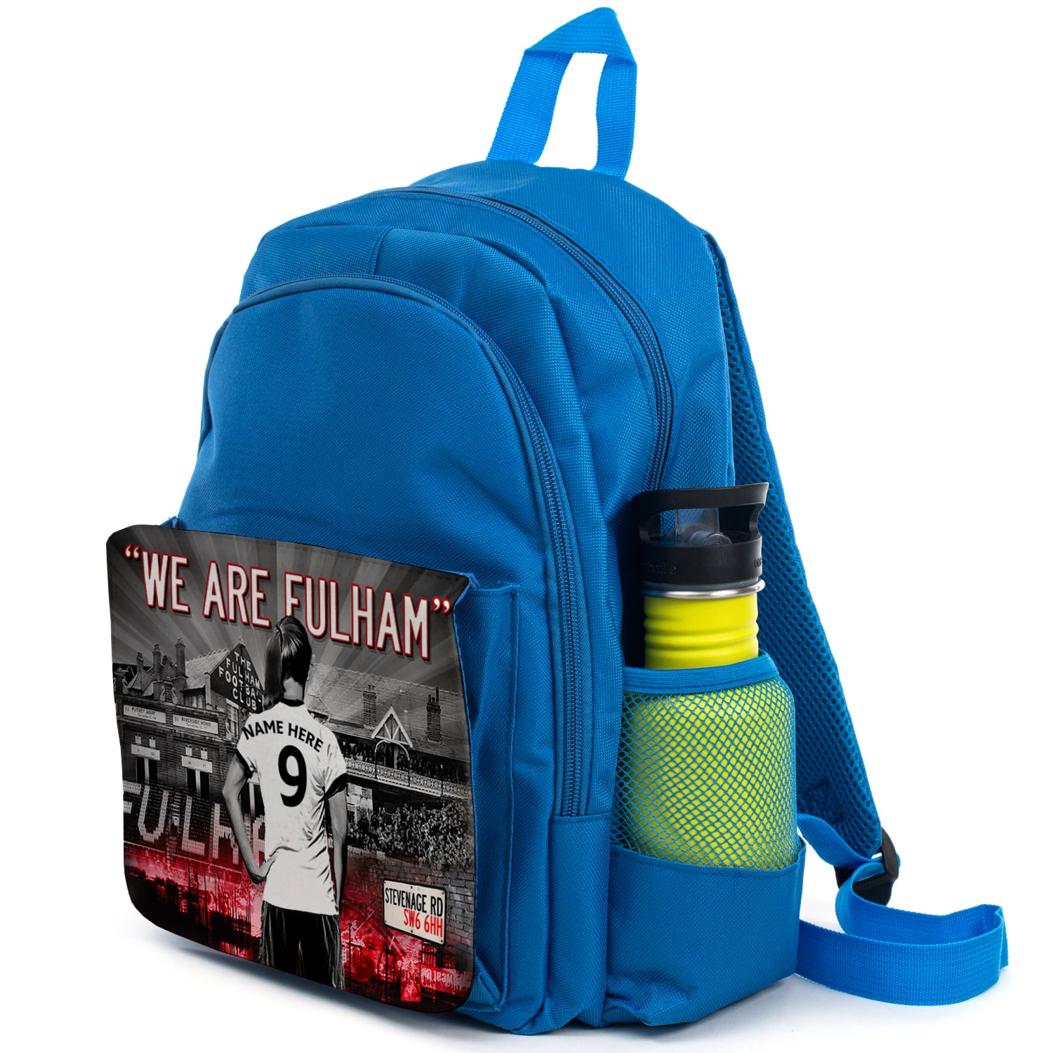 Women’s Football Fulham Personalised Girls Backpack is the perfect back to school gift for your child! Great as a kids’ school book bag and ideal for sports PE kits, days out and travel. Each rucksack is handmade for you and personalised with a name and player’s squad number. A unique and practical gift to get ready for term time. We have matching football team lunch bags and pencil cases too!
