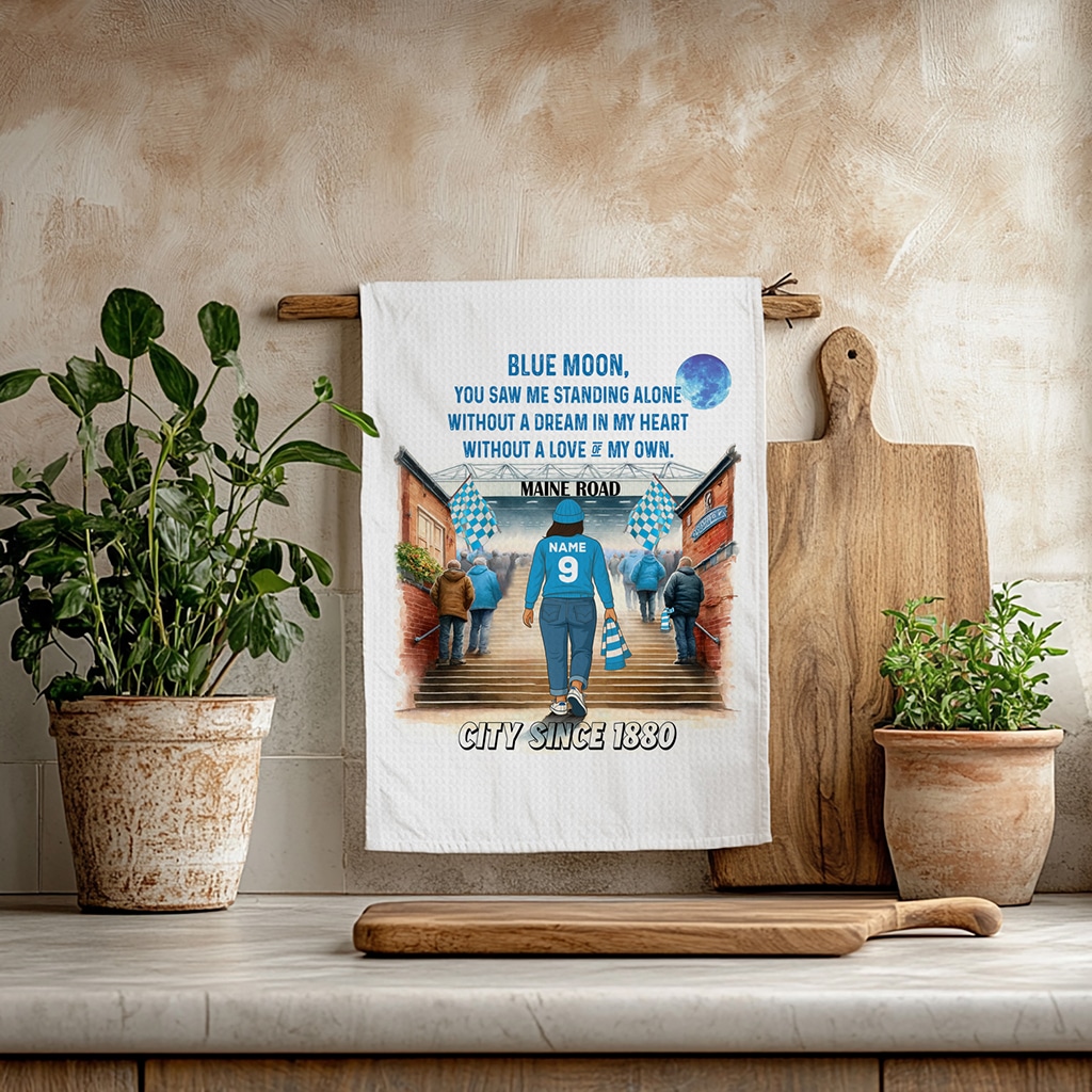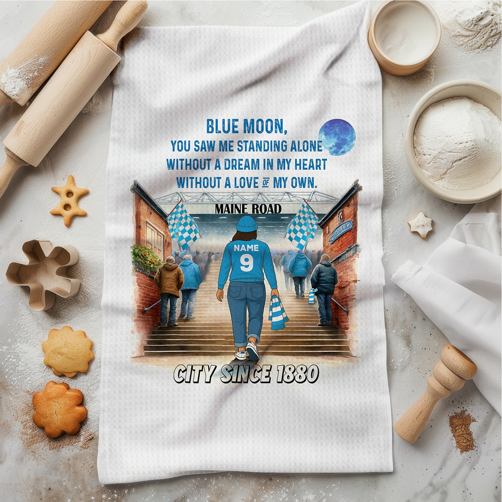 Women’s Football Man City Personalised Kitchen Tea Towel SFC131