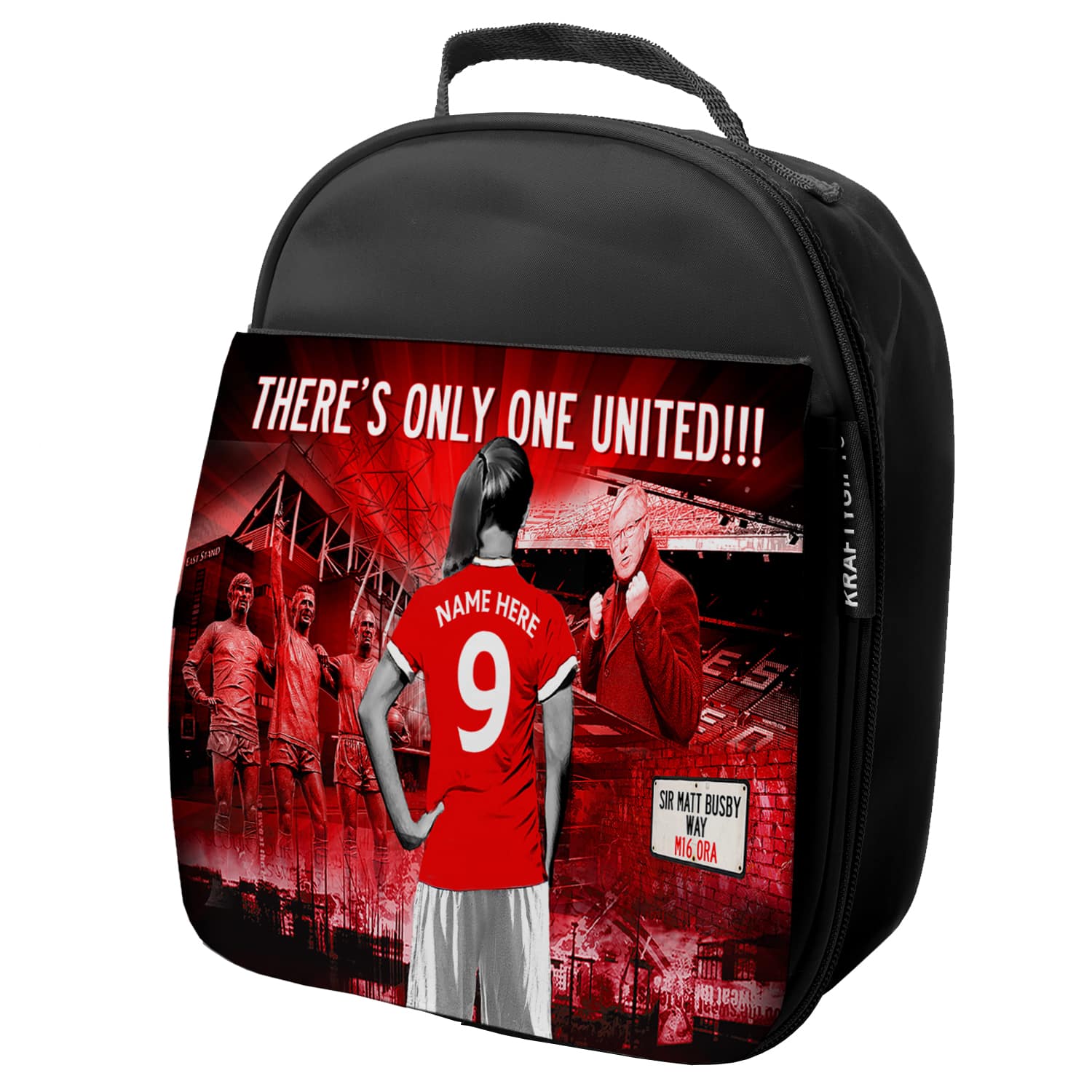 Women’s Football Man Utd Personalised Girls School Lunch Bag is the perfect back to school gift for your child! Ideal to carry kids’ school lunch or for nursery, each lunch bag is handmade to order and personalised with a name and player’s squad number.