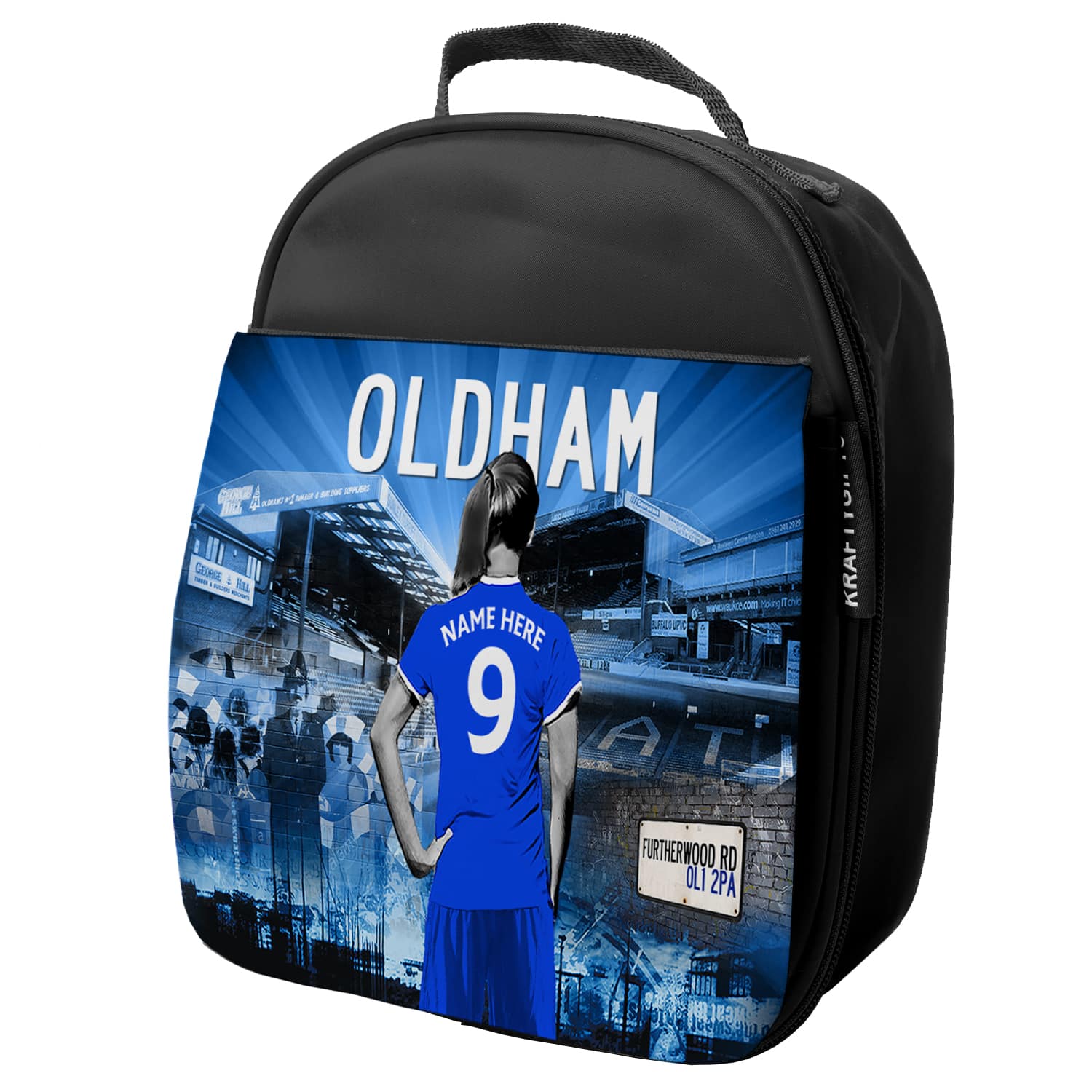 Women’s Football Oldham Personalised Girls School Lunch Bag WF96